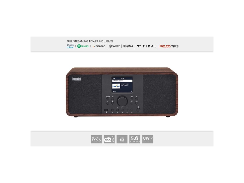 Hybridní stereofonní rádio pro příjem internetu, DAB+, FM rádia, s rozsáhlým portálem pro streamování, Bluetooth 5.0, UPnP a mnoha uživatelsky přívětivými funkcemi.